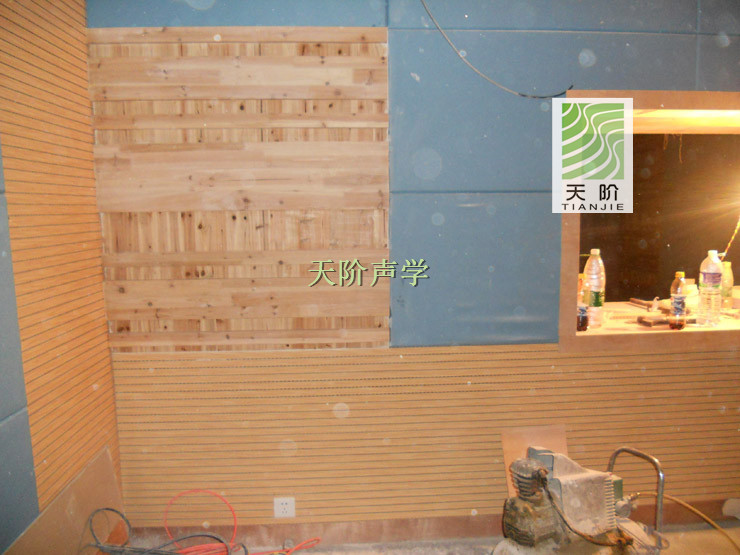 3.)裝飾條安裝法:用裝飾條將其固定在墻體、龍骨或需要裝飾吸音板的物體上,也可與上述方法配合使槽孔吸音板