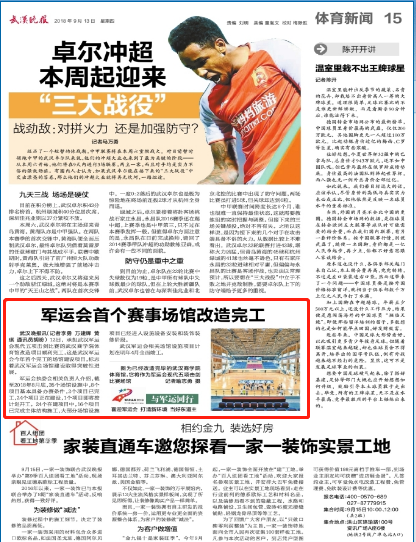 12日,承擔武漢軍運會現代五項擊劍比賽的武漢商學院體育館改造項目順利完工,這是武漢軍運會今年首個完工的場館建設項目,標志著武漢軍運會場館建設取得突破性進展。
