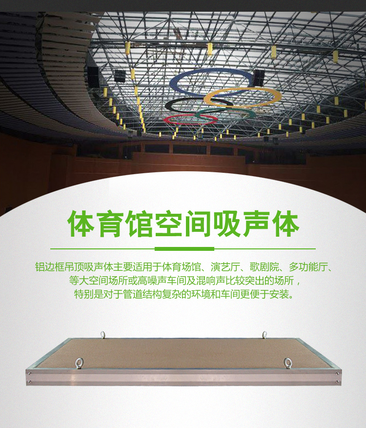 體育館吸音材料指的是室內墻體及體育館吊頂吸音材料。該場所墻面所采用的吸聲板分別有:槽木吸音板孔木吸音板,天花吊頂采用的是空間吸音體,這幾種結構吸聲材料。那現在讓我分為介紹一下這兩款體育館吸音材料的特性!