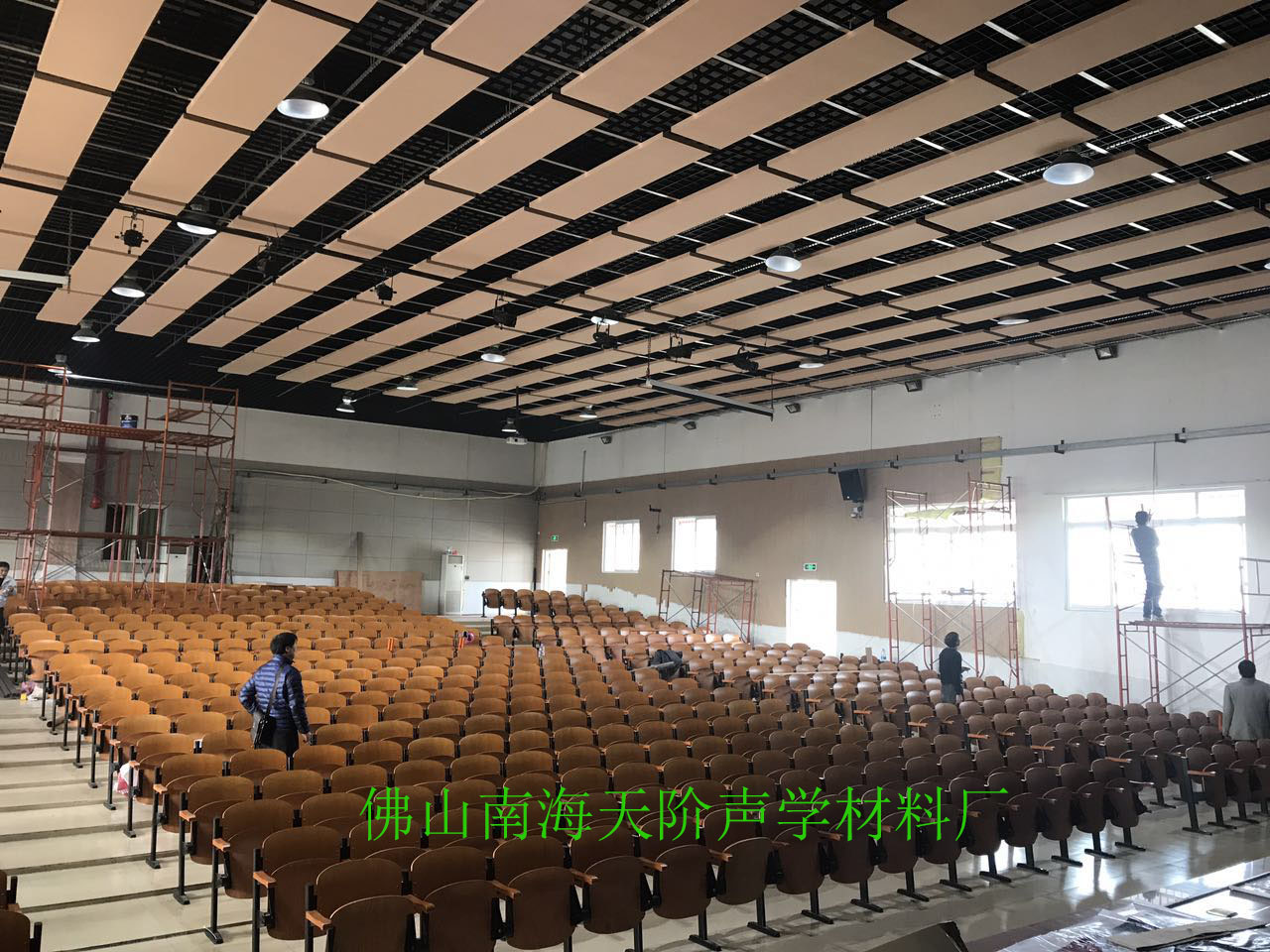 韶關田家炳中學禮堂,使用了天階牌槽木吸音板1000平方。