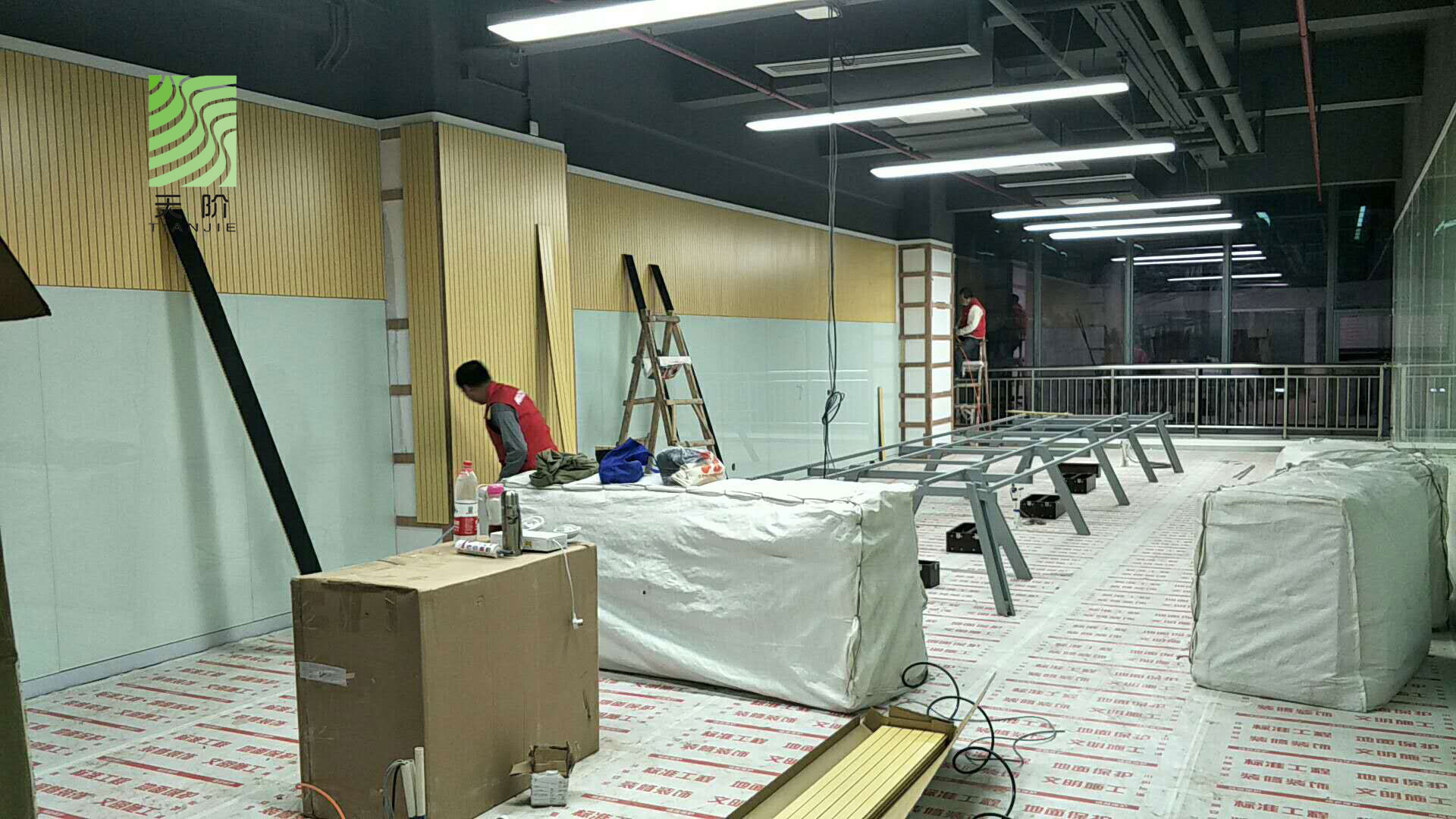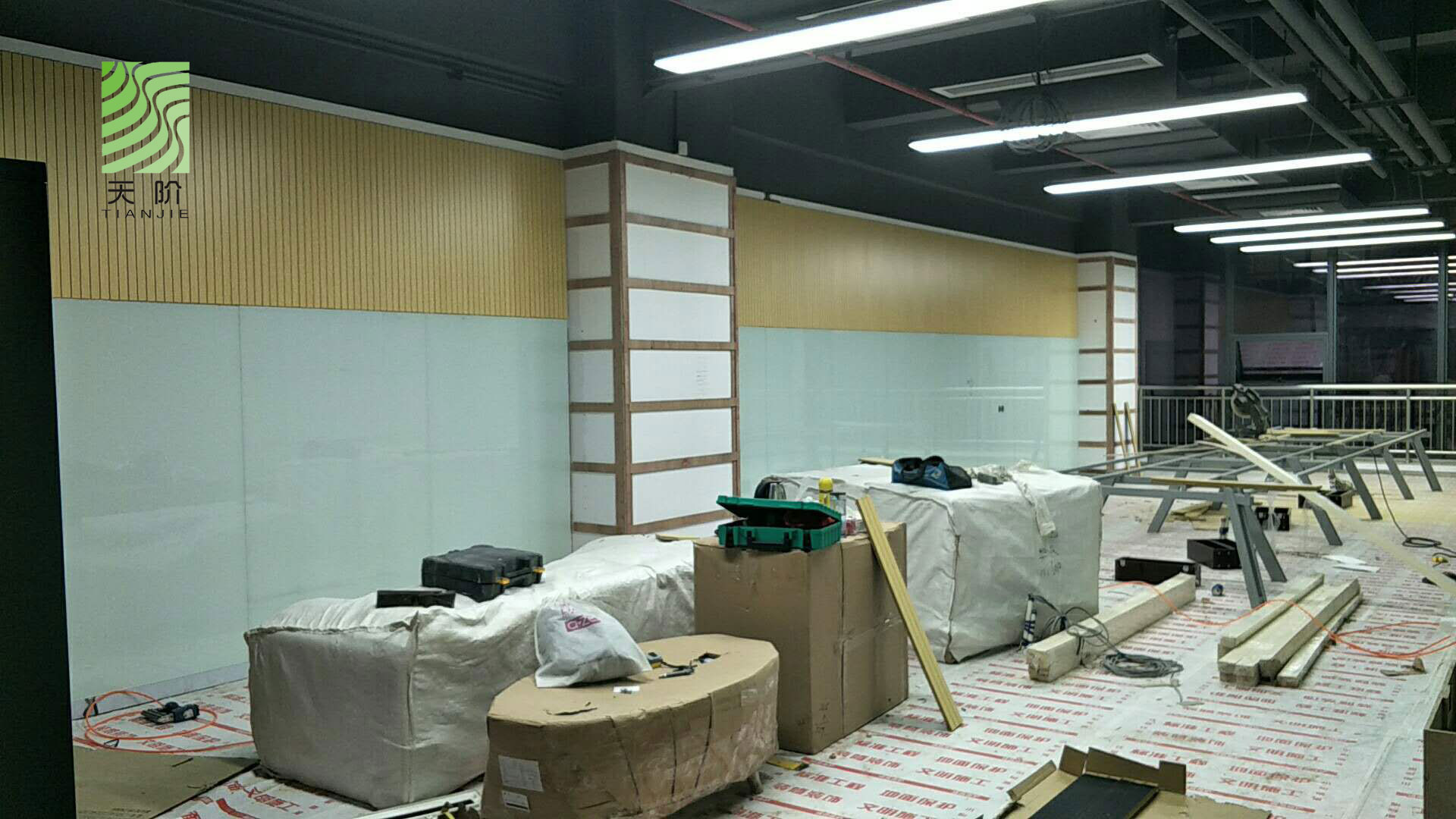 東莞藍思科技有限公司辦公室經(jīng)和多家吸音板公司對比,最終選用了天階吸音板,安裝效果圖如下: