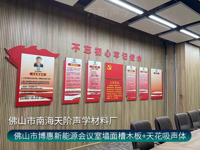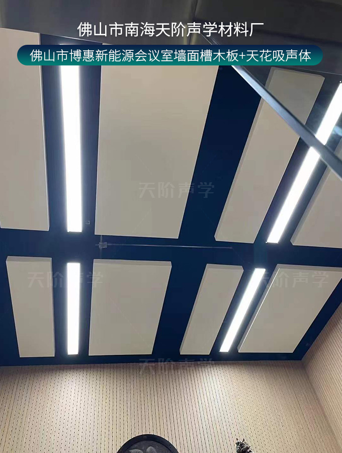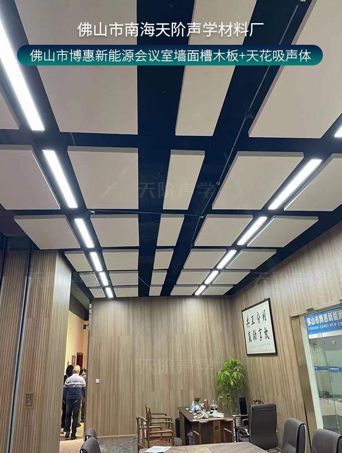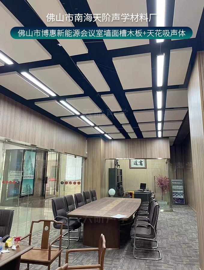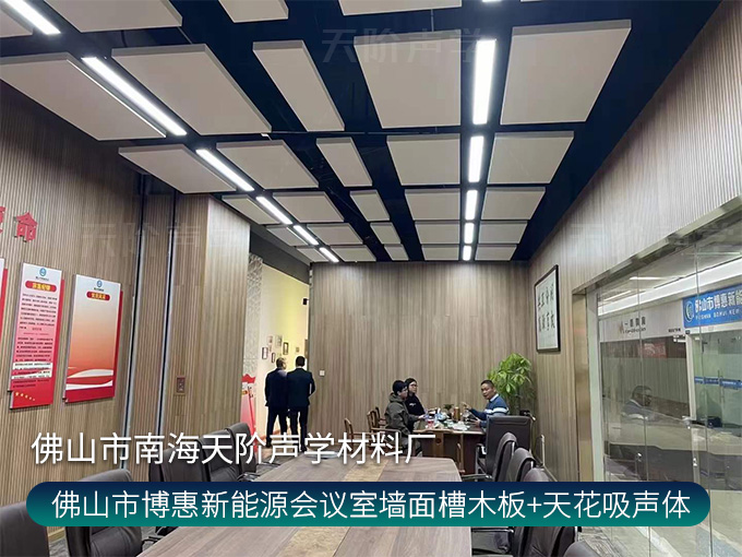 佛山市博惠新能源會議室墻面槽木板+天花吸聲體