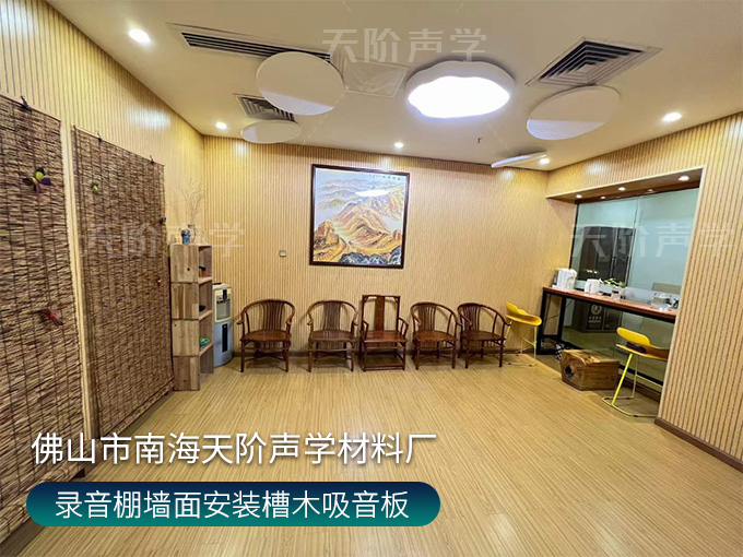 錄音棚墻面安裝槽木吸音板