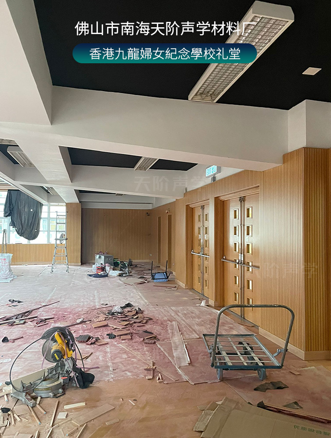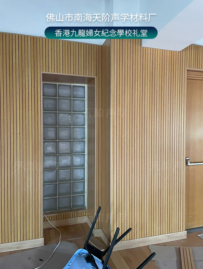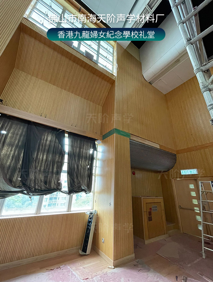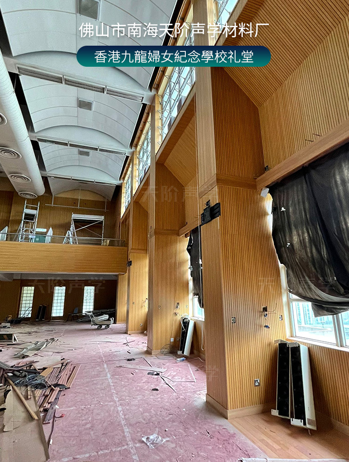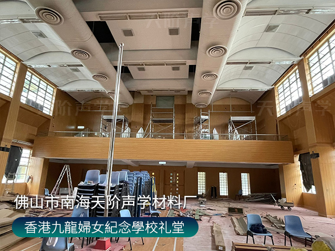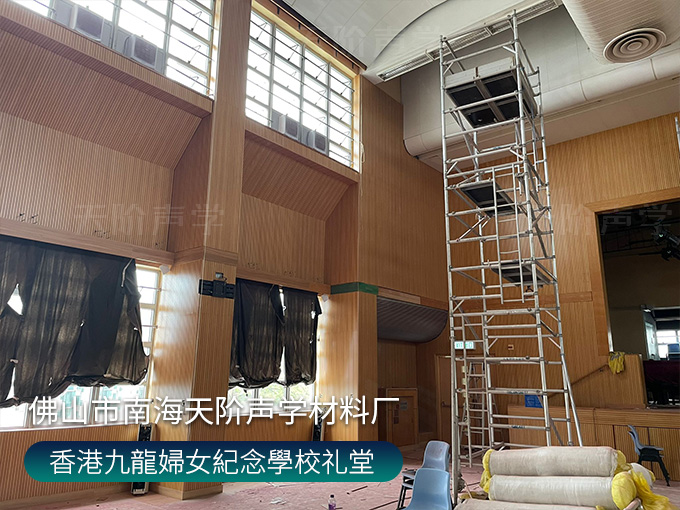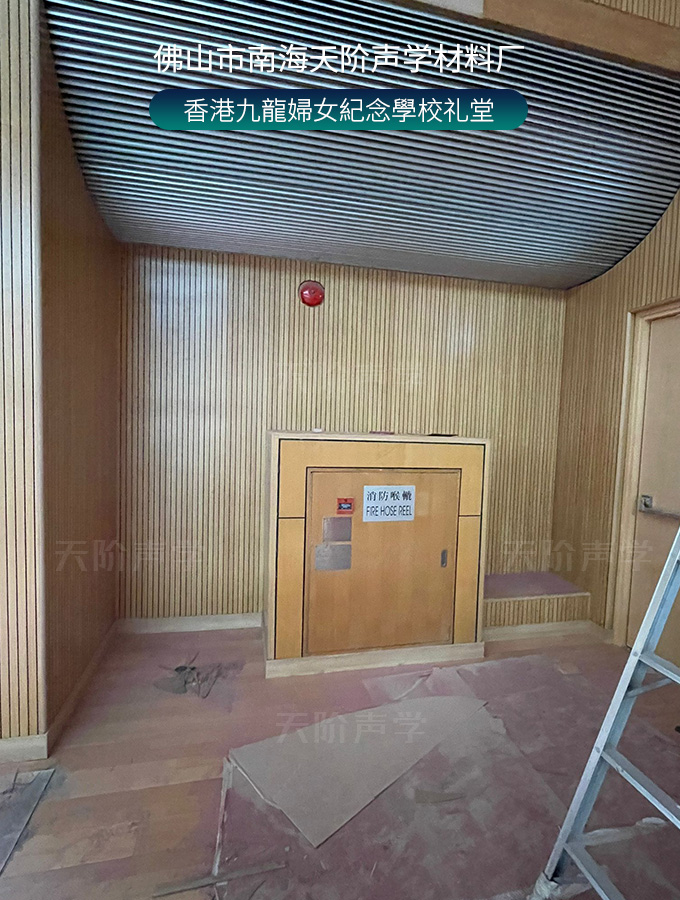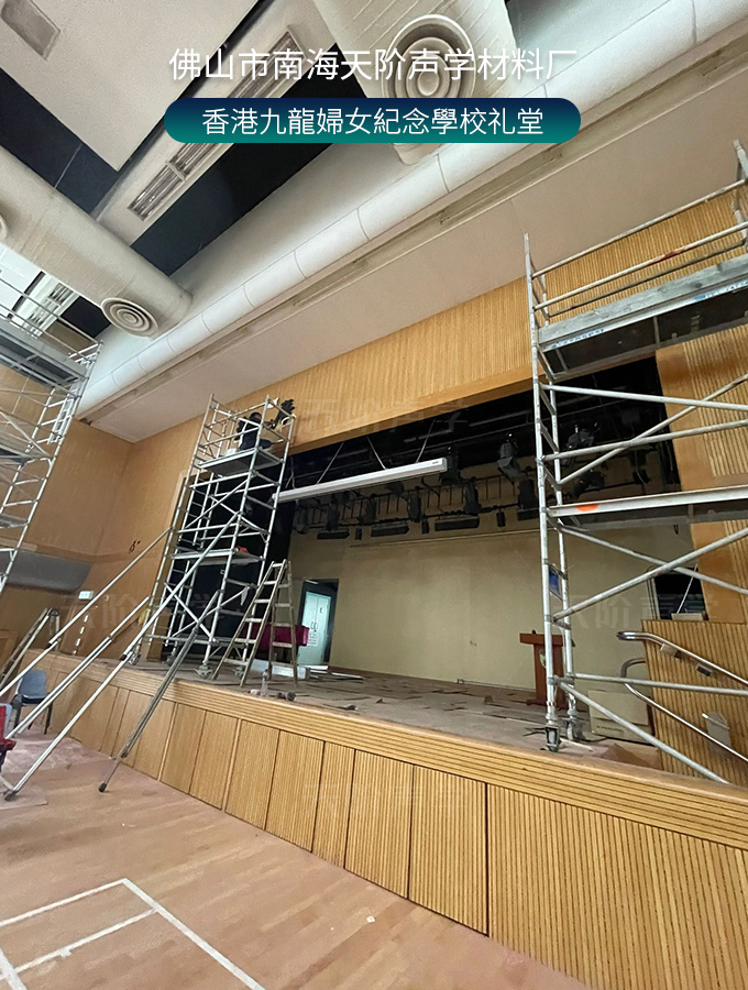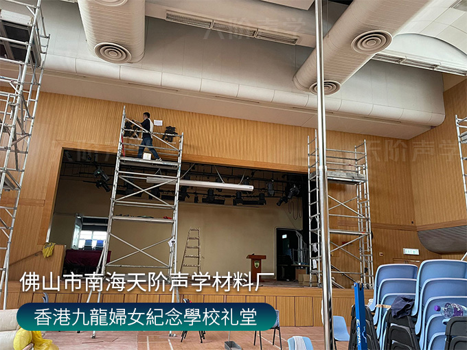 香港九龍婦女紀念學校禮堂,墻面安裝木質吸音板