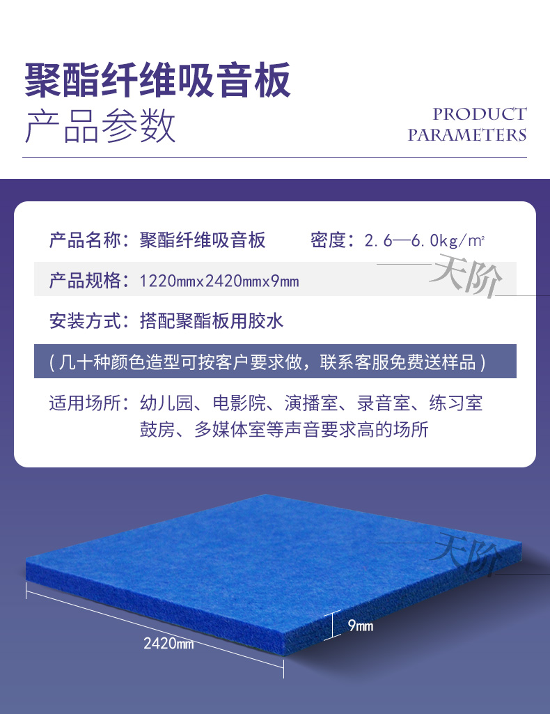 聚酯纖維吸音板產品參數: