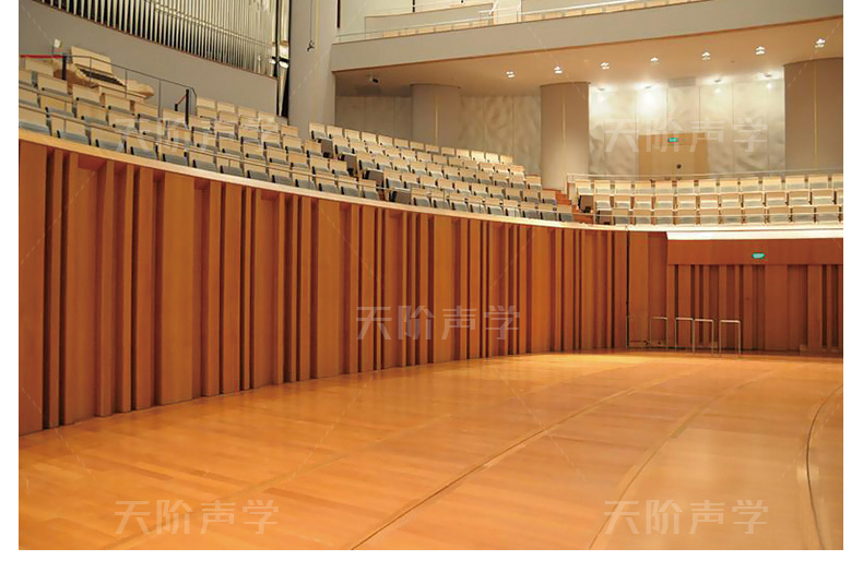 擴散是指聲音朝著許多方向不規(guī)則反射、折射和衍射的現(xiàn)象。擴散對“豐滿度”、“活躍度”、“空間感”是有利的,并且能保持豐滿和明晰度之間的平衡,語言清晰度和較長混響時間之間的平衡,還可以保持觀眾廳內(nèi)音調(diào)的自然性。可以讓室內(nèi)聲能分布均勻,清除回聲等。室內(nèi)擴散不好,音色往往很粗糙。擴散體就是為改進聲場擴散性能所采用的布置,設計依據(jù)是利用不規(guī)則界面改變發(fā)射聲的波前,或者改變聲阻抗。