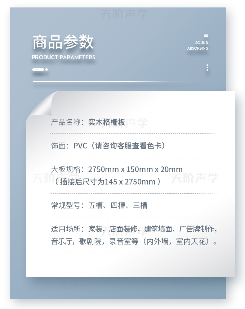 適用場所:家裝,店面裝修,建筑墻面,廣告牌制作,音樂廳,歌劇院,錄音室等(內(nèi)外墻,室內(nèi)天花)。