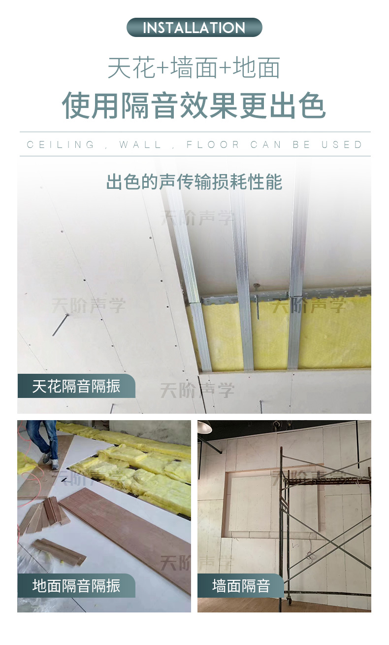 適用范圍:KTV、酒吧、酒店、住宅、錄音室、健身房、電影院、博物館、會議室、賓館、歌舞廳、辦公場所等需要隔離噪音的場所。