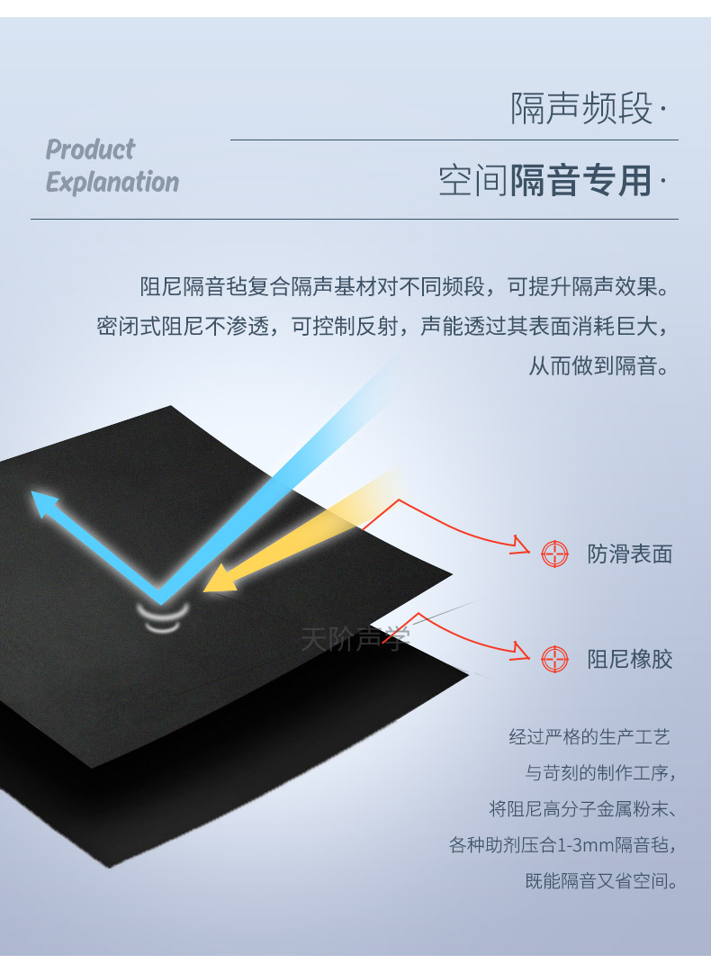阻尼隔音氈以高純度精細(xì)鐵粉為原料,應(yīng)用新的減震隔音技術(shù),開發(fā)研制出針對地板、墻壁、管道的隔音材料。能夠有效地阻隔外界的噪聲,營造一個安全、安靜、舒適的環(huán)境。