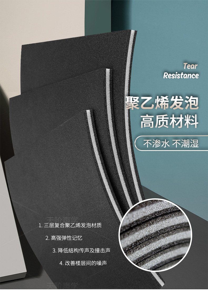 納米泡沫是一種高密度的發泡其穿孔率、孔徑都是經過特殊設計制成,能夠做到隔音減震防水防潮的作用,適合多種潮濕環境,是一種綠色環保,施工簡單的產品。