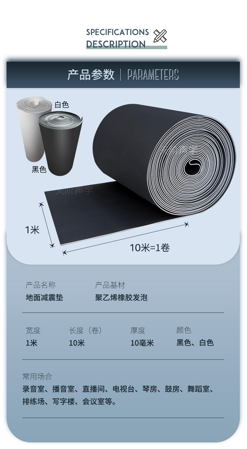 減振墊主要應用于KTV、酒吧、健身房、住宅、賓館、酒店、學校、商務大廈;KTV、夜總歌舞廳等娛樂場所及其它需要隔音減振的地方,具有的阻尼減振效果,是一種性價比高的輔助地板材料。