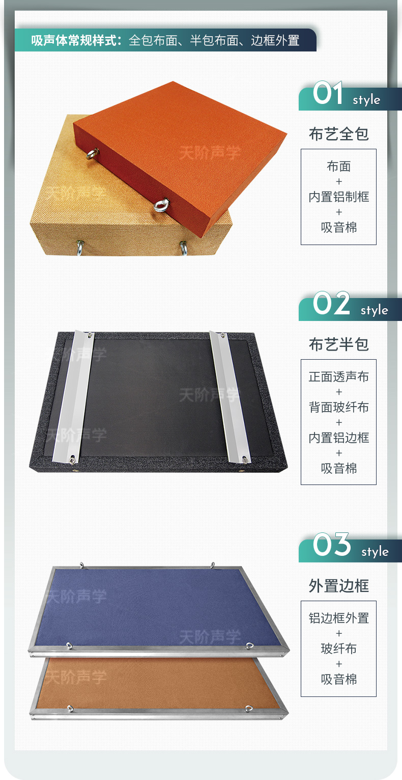 飾面:普通布料,阻燃透聲布料,阻燃玻纖布