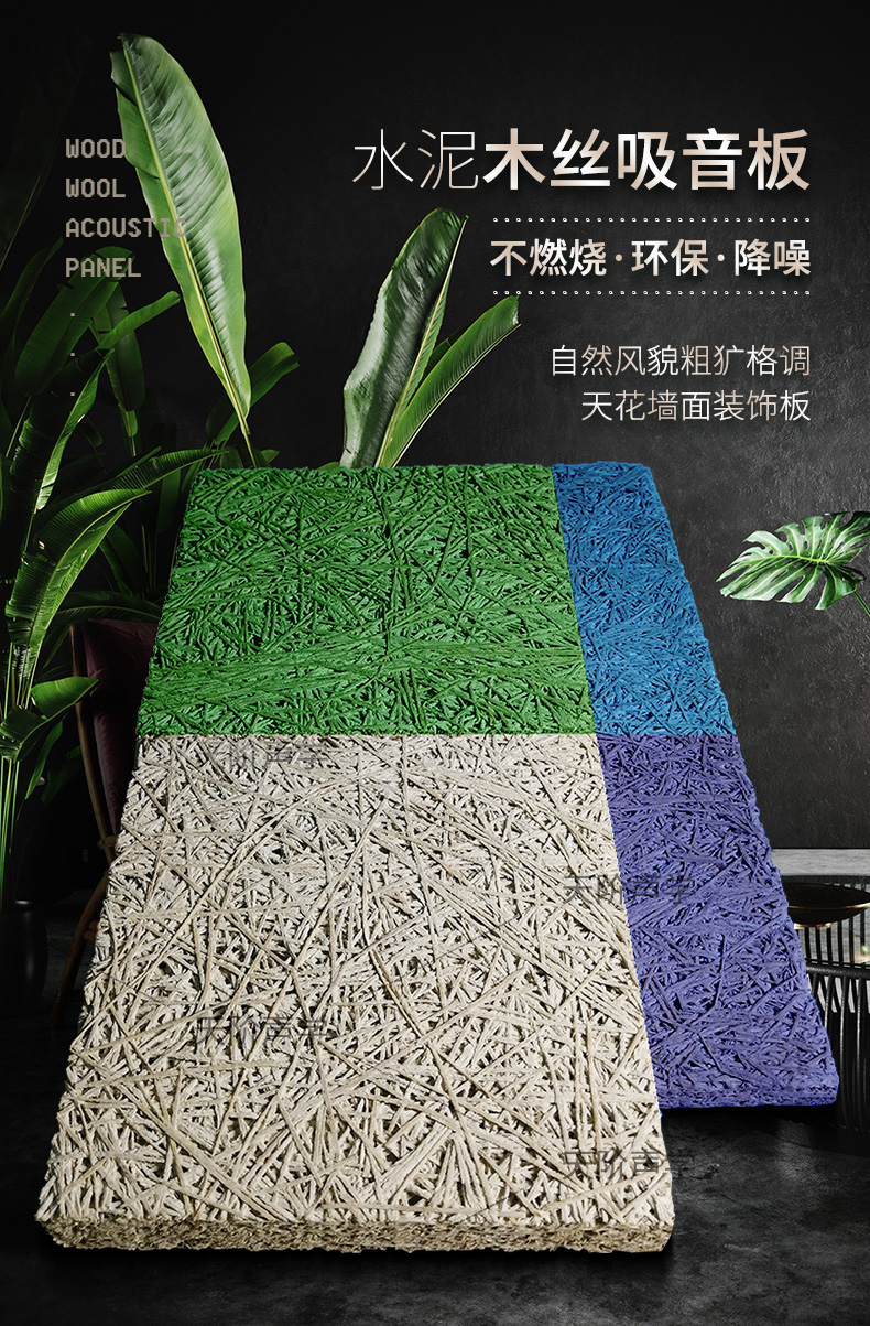 木絲吸音板以白楊木纖維為原料,結(jié)合獨(dú)特的無機(jī)硬水泥粘合劑,采用連續(xù)操作工藝,在高溫、高壓條件下制成。該產(chǎn)品擁有只有通過合成若干不同的建筑材料才能獲得的物理特性。外觀獨(dú)特、吸音良好--獨(dú)有的表面絲狀紋理,給人一種原始粗獷的感覺,滿足了現(xiàn)代人回歸自然的理念。表面可做飾面噴色和噴繪處理.